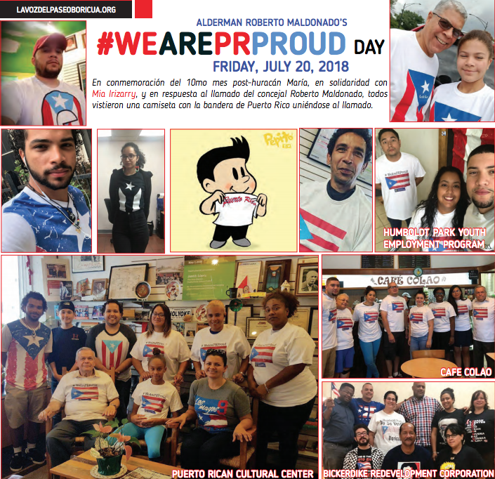 El Barrio #WEAREPRPROUD 1ST NATIONAL PUERTO RICAN T-SHIRT DAY! By La Voz Staff - July 30, 2018 0 1308 En conmemoración del 10mo mes post-huracán María, en solidaridad con Mia Irizarry, y en respuesta al llamado del concejal Roberto Maldonado, todos vistieron una camiseta con la bandera de Puerto Rico uniéndose al llamado. Please follow and like us: